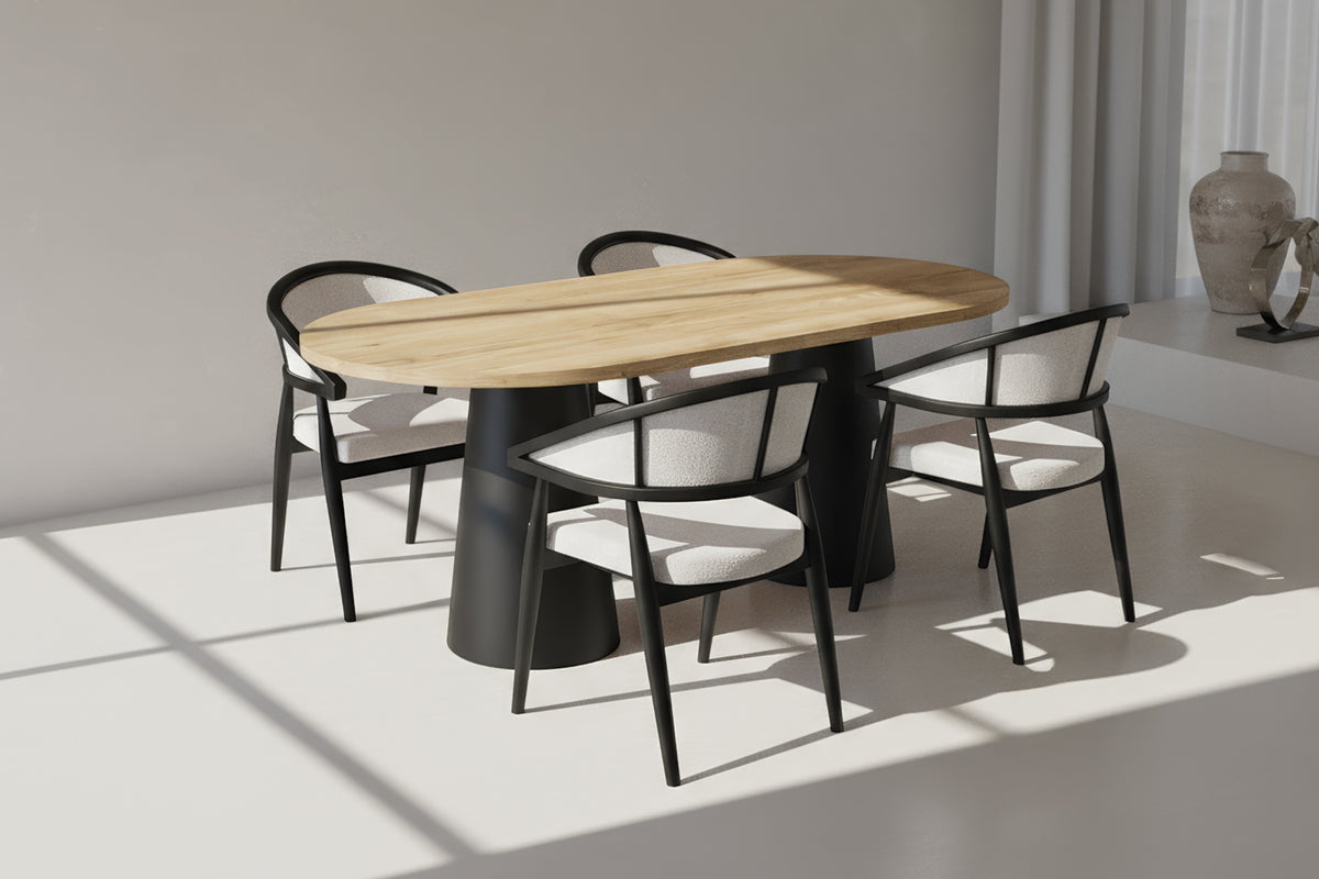 Oval Meşe MDF Konik Siyah Masa Takımı